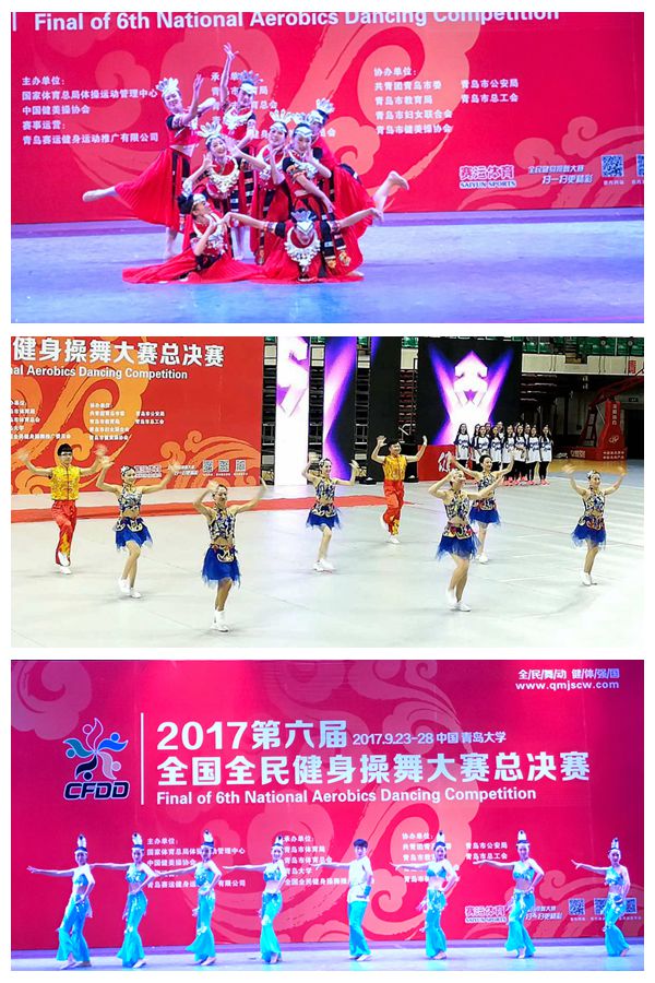 民大新闻网讯 9月23至28日,由国家体育总局、中国健美操协会、全国全民健身操舞推广委员会主办的2017第六届全国全民健身操舞大赛总决赛在青岛大学举行。我校教师代表队获得一等奖4项,学生代表队获得一等奖3项、二等奖1项。宋君、张雪莹、董航、李孟华四位老师获全国优秀教练员称号。