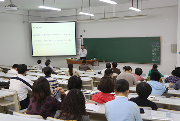 民大新闻网讯 按照学校推进“两学一做”学习教育常态化制度化的要求,根据学校党委宣讲团宣讲计划,日前,党委宣讲团成员、思想政治理论课教学科研部闫振存教授为机关第一党总支作了题为“高举中国特色社会主义伟大旗帜,为决胜全面小康社会实现中国梦而奋斗——学习习近平总书记‘7·26’重要讲话精神”的主题宣讲活动。校长刘玉彬,机关第一党总支各党支部、体育教研部体育馆直属党支部、图书馆直属党支部教职工参加了专题学习。