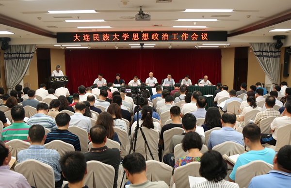 民大新闻网讯 为深入贯彻落实全国高校思想政治工作会议精神,贯彻落实国家民委党组、辽宁省委和大连市委的部署和要求,进一步加强和改进新形势下我校思想政治工作,9月1日下午,学校召开思想政治工作会议。校领导赵铸、刘玉彬、王晓华、杜元虎、刘锐、陈明华、王永强,学术委员会主要负责人、处级领导干部、“两课”教师代表、班导师代表、辅导员代表、公寓管理中心负责人等参加会议。会议由校长刘玉彬主持。