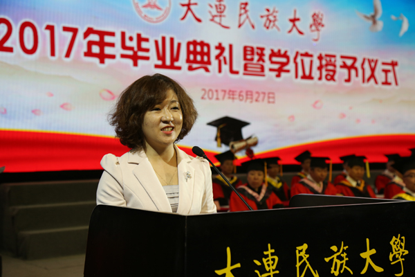 校友代表、国际经济与贸易专业2008届毕业生张慧,讲述了自己扎根基层、服务民族地区的生活工作经历,希望同学们不辜负学校的培养,深入基层,服务群众,大有作为,既仰望星空又脚踏实地,让青春之花绽放在祖国最需要的地方,在实现中国梦的伟大实践中书写别样精彩的人生。