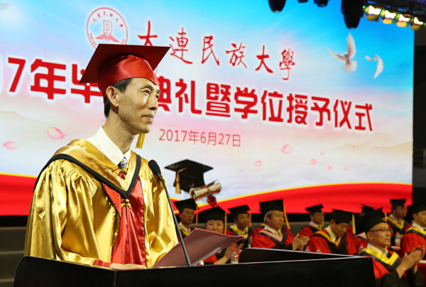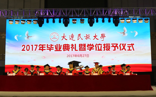 典礼在庄严的国歌声中拉开帷幕。学位评定委员会办公室主任白日霞宣读2017届毕业生名单、授予学位的决定和表彰优秀毕业生的决定。校领导为优秀毕业生代表颁发证书。