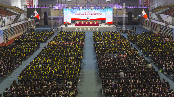 民大新闻网讯 6月27日,我校2017届毕业典礼暨学位授予仪式在体育馆隆重举行。校领导赵铸、刘玉彬、王晓华、段晓东、陈明华,学位评定委员会全体委员、各职能部门负责人、学院院长、党总支书记、教师代表、辅导员、毕业生代表及校友代表参加典礼。典礼由学校办公室主任王永强主持。