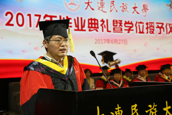 校长刘玉彬发表了热情洋溢的讲话,向辛勤培育学生成长的老师致以诚挚感谢,向含辛茹苦的家长致以崇高敬意,向远道而来的校友致以热烈欢迎,向全体毕业生致以衷心祝贺,对毕业生在大学期间所取得的成绩给予高度评价。面对即将踏上新征程、开启新生活的毕业生,刘玉彬提出三点期望:一是怀揣梦想。有梦想就能抵挡诱惑,让人生不偏航;有梦想就能经受压力,让灵魂不退缩;有梦想就能保持初心,让前路更坚定。二是播撒善意。要对这个世界充满善意,以更广阔的胸怀,更真挚的情感,去拥抱社会、拥抱他人,用心传递爱和温暖。三是走好自己人生的长征路。作为民大人,要牢记民大精神,不论走上什么岗位,都要做民族团结、社会稳定和祖国统一的坚定捍卫者。