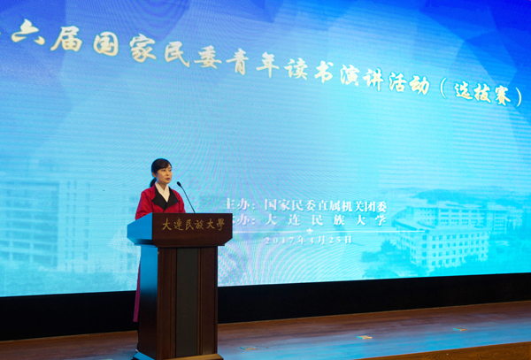 牛晓峰在致辞中对我校浓厚的读书学习氛围、学术研究氛围、教书育人氛围表示赞许。她表示,青年读书演讲活动已成为国家民委系统倡导读书、促进学习、引导进步的重要平台,年青人在一起相互交流、相互学习、共同进步,必将成为今年共青团工作的一个新起点和新亮点。