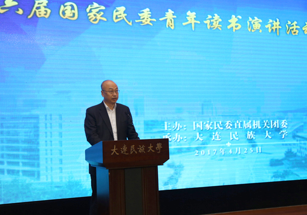 民大新闻网讯 4月25日,第六届国家民委青年读书演讲活动(选拔赛)在我校金石滩校区报告厅举行。国家民委直属机关党委常务副书记牛晓峰,学校党委书记赵铸、副校长陈明华出席活动开幕式。开幕式由学校团委书记史明涛主持。