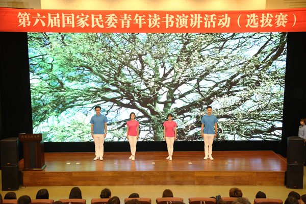 青年读书演讲活动已成功举办5届,成为备受委党组关注、备受委系统青年喜爱的精品活动。此次,共有来自国家民委机关各部门、委属各单位(高校)的28名选手分上下午两个时段进行了精彩的演讲。演讲过程中,选手们结合自身生活和阅读经历,表达了对党和祖国真挚的感恩情怀,抒发了阅读的热情,畅谈了读书的收获、体会和感悟。演讲主题明确、内容丰富、声情并茂、精彩纷呈,获得在场师生阵阵掌声。我校机电工程学院教师郑琳以《不做教书匠,我们做什么?》获得委属单位组第一名,并获邀在五四期间参加在北京举办的国家民委青年读书演讲活动展示会。大学生艺术团表演的配乐诗朗诵《青年读书奋进时》和情景诗朗诵《五四放歌》,以积极贯彻习近平总书记关于读书的系列重要讲话和纪念五四运动为创作背景,同时获邀参加展示会。