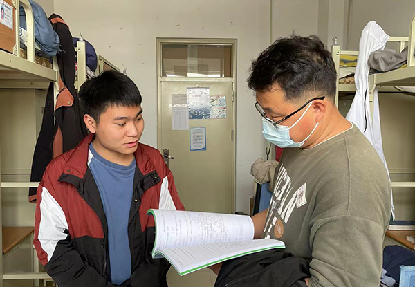 理学院、预科教育学院预科211班班导师国策坚持每日与3名学生进行线上谈话,充分倾听学生的需求;预科219班李贞发动寝室长制定线上学习制度、以寝室为单位进行运动打卡、班级同学共读一本书等活动,让校园学习生活有温度、有方向;区块链211班班导师孙雪莲也是驻校教师,一对一针对日检查中查寝未按时起床上课的学生进行谈话,与学生共同规划制定本周生活规划,并定期进行复盘与调整;区块链212班导师许凤丹坚持“知心姐姐”的身份与学生在群内交谈,分享共读书籍、探讨专业学习,让爱与温暖无处不在。