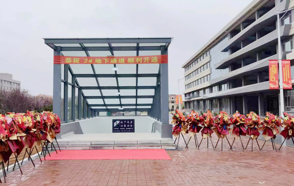 该地下通道横穿金石滩旅游度假区武夷路地下,总长度90余米,内部宽6米、高3.6米,深入地下9米。其所处位置地质复杂,并横穿燃气、供暖、通讯等10余条地下市政管线,自去年11月底开工以来,克服了现场作业面狭窄、施工难度大和新冠肺炎疫情等不利影响,仅用了3个月时间就完成了全部施工任务。