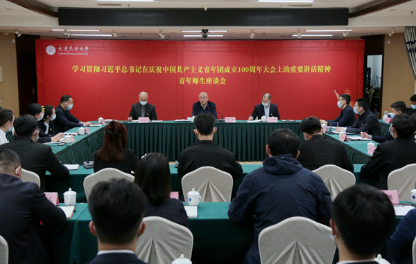 会上,青年师生代表围绕学习贯彻习近平总书记在庆祝中国共产主义青年团成立100周年大会上的重要讲话精神,结合学习工作和生活实际,谈了学习体会和感受,纷纷表示要牢记习近平总书记谆谆教诲和殷殷嘱托,坚定不移听党话、跟党走,争做“学在民大”的践行者,争做铸牢中华民族共同体意识的实践者,脚踏实地,刻苦学习,为实现中华民族伟大复兴的中国梦努力奋斗。