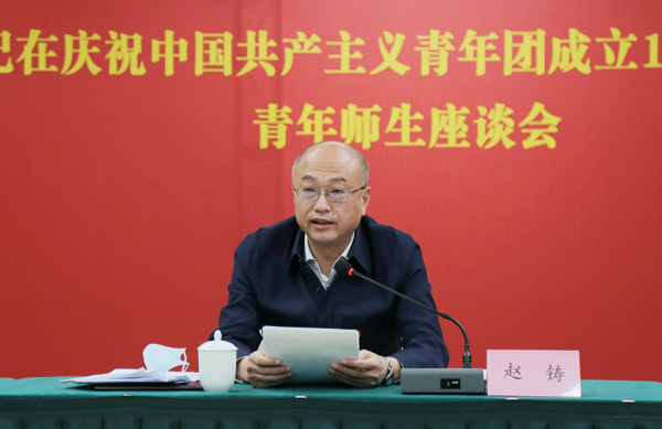赵铸代表学校党委,向全校共青团员和各级团组织、团干部致以诚挚的问候,向全校各民族学生,广大青年教师和青年教职员工致以诚挚的问候。他指出,习近平总书记在庆祝中国共产主义青年团成立100周年大会上的重要讲话,让我们深切感受到以习近平同志为核心的党中央对共青团工作的高度重视,深切感受到习近平总书记对广大青年的亲切关怀和殷切期待,深切感受到新时代青年迎来了最好的历史发展机遇。我们要认真学习、牢记嘱托、深入践行。