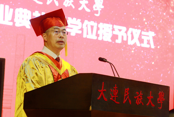 丁克毅指出,四年民大情,一生民大人。这场来之不易的毕业典礼,源自大连民族大学三十余年“爱生如子”的育人文化积淀,源自民大师生“爱校如家”共同筑牢校园疫情防线的辛勤付出。四年来同学们共同见证了中华民族伟大复兴的脚步,共同见证了学校在建设高水平现代化综合大学的征程上迈出坚实步伐,用实际行动践行“请党放心、强国有我”的铿锵誓言,取得了优异成绩,他为同学们的成长而骄傲自豪。面对即将踏上新征程、开启新生活的毕业生,他提出三点叮嘱:一是以团结的品格与祖国共奋进。要将民族团结基因赓续传承,发扬光大,坚定对伟大祖国、中华民族、中华文化、中国共产党、中国特色社会主义的高度认同,永远作维护中华民族大团结、实现中华民族伟大复兴中国梦的先锋力量。二是以自强的品格为人生博精彩。青年是社会中最有生气、最有闯劲、最少保守思想的群体,蕴含着改造客观世界、推动社会进步的无穷力量。生活的真谛从来都不在别处,就在日常一点一滴的奋斗里。要始终坚定信念、昂扬斗志,保持勇往直前的精神气度,进取、进取、不断进取,奋力书写民大学子的人生答卷。三是以乐观的品格为生活添幸福。忙碌能教会我们“积微成著”的意义,艰辛能教会我们“锲而不舍”的道理,挫折能教会我们“战无不胜”的办法。要穿过挫折时的彷徨不定,努力追寻春光里的信马由缰,用心生活、热爱生活,在乐观豁达中拥抱简单而美好、充实而幸福的人生。