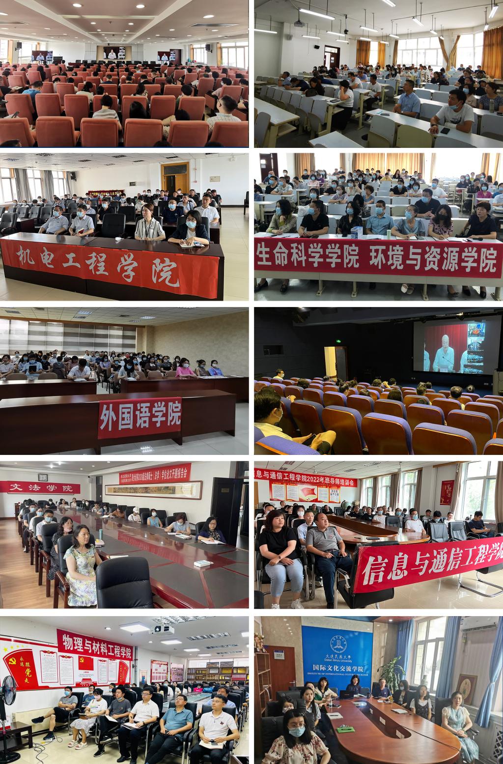 会议采用视频会议形式举行,设主会场及20个分会场。党委常委、校领导,“两委”委员,各单位各部门主要负责人,党支部书记、班导师、研究生导师、辅导员、服务保障职工、公寓管理中心职工代表、教职工代表等在主会场参会。其他教职员工和部分学生代表在各分会场参会。