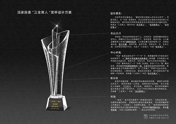 民大新闻网讯  近日,受国家民委教育司委托,在学校党委的部署和指导下,我校设计学院组织开展了国家民委“三全育人”模范奖杯设计征集活动,最终郭磊老师设计的《书映山河》奖杯被正式采纳。
