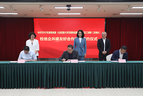 包和平、管占龙、范业民分别代表大连民族大学党委统战部、甘井子区委统战部、甘井子区工商联签署校地企共建合作协议。根据协议,三方将在形成长效机制、开展互访交流、推进资源共享、理论课题研究、推动产学研结合、人才资源深度融合、助力振兴发展、学生实习就业、教育培训、挂职锻炼等方面开展合作。