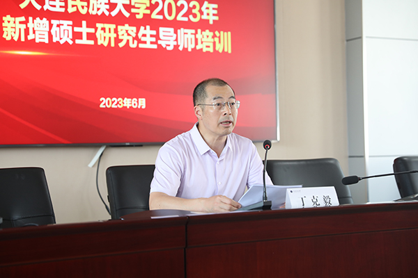 丁克毅介绍了我校研究生教育的发展历程、面临的挑战和未来的发展思考。他强调,新增导师要做研究生培养的责任人,坚守“为党育人、为国育才”的初心使命,铸牢中华民族共同体意识,引导研究生树立正确的世界观、人生观和价值观;要做研究生成长的引路人,强化岗位意识,跟踪学术前沿问题、持续研究、勇于创新,不断提升个人专业功底和治学水平,用实际行动影响和感染学生,培养研究生成长为堪当民族复兴重任的时代新人;要做研究生生活的知心人,倾情投入,严管厚爱,构建和谐的导学关系,密切关注所培养研究生的所思、所忧、所盼,真正走进学生内心世界。