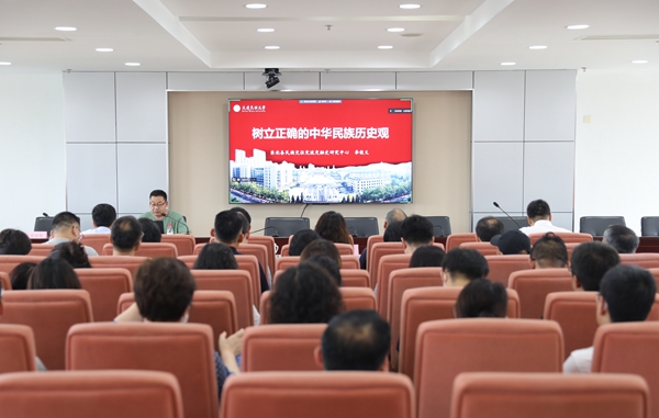 李俊义以《树立正确的中华民族历史观》为题,紧跟贯彻落实习近平新时代中国特色社会主义思想,紧扣推动学校事业高质量发展,紧贴学校铸牢中华民族共同体意识工作的重点,阐述了树立正确的中华民族历史观的重要性,就如何厘清错误观点、树立正确的中华民族历史观作了深入的解读,帮助广大教师进一步了解中华民族多元一体格局,深入认识中华民族历史的发展脉络,增强对中华民族的认同感和自豪感。