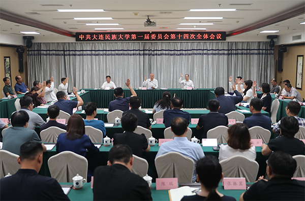 民大新闻网讯 8月26日,中国共产党大连民族大学第一届委员会第十四次全体会议召开。学校党委书记赵铸主持会议并讲话,全体党委委员参加会议,非党员校领导、全体纪委委员、各二级党组织书记、各单位各部门主要负责人、处级领导干部、有关师生代表列席会议。