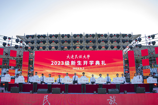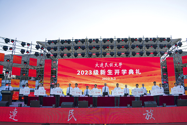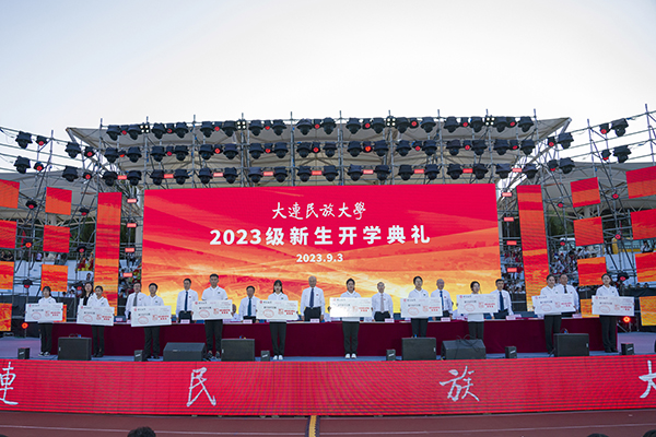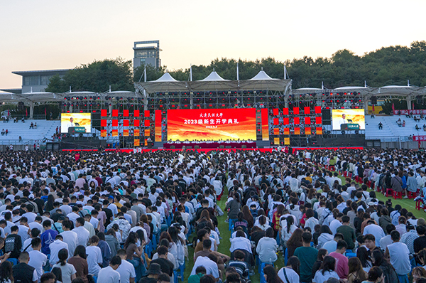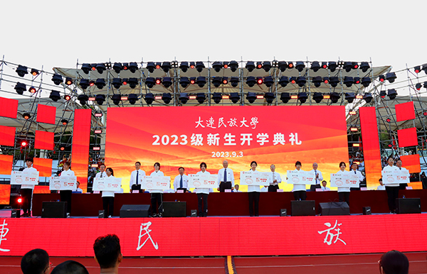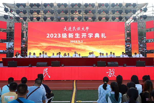 民大新闻网讯  9月3日,学校2023级新生开学典礼在金石滩校区体育场隆重举行,5359名本(预)科新生、540名研究生新生怀揣青春梦想,开启人生新旅程。