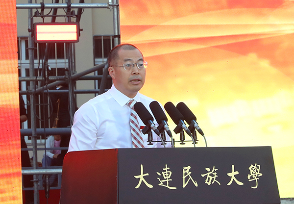 丁克毅代表学校党委和全校师生员工,向来自全国各地的5899名新同学表示热烈的欢迎和诚挚的祝贺,向为同学们付出辛劳的父母、师长和亲友表示衷心的感谢。他以“民大文化”为关键词,介绍了学校办学发展历程和取得成绩。作为国家民委直属高校,学校始终把做好民族团结,铸牢中华民族共同体意识作为重要使命职责,不断促进各民族同学交往交流交融。经过三十余年的建设,积淀了“艰苦创业、坚韧不拔、团结爱校、新校新办”的民大精神,打造了“学在民大”的民大口碑,形成了激励广大师生团结、奋进、育人的民大文化。在新起点上,希望同学们将民大文化内化为续写新篇的具体行动,深刻理解“四海一家”、深刻把握“大道为公”、深刻领悟“自强不息”,在团结统一中铸牢中华民族共同体意识,在民族复兴中砥砺家国情怀,在守正创新中不断行稳致远,以“豁得出去”的干劲、“迎难而上”的闯劲、“滴水穿石”的韧劲,努力担当起建设中华民族现代文明的新生代,担当起传承发展中华文化、建设中华民族现代文明的历史使命,在强国建设、民族复兴的新征程上书写无愧于时代的精彩人生。