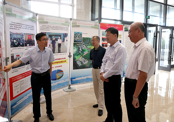 余功斌一行观看了学校办学整体情况宣传展板,参观了学校生物技术与资源利用教育部重点实验室、设计学院教育教学成果展等,详细了解学校建设发展情况,听取相关工作汇报。余功斌肯定了学校近年来取得的成绩。他指出,大连民族大学勇于担当负责,积极主动作为,在铸牢中华民族共同体意识、产学研合作、学生就业等方面为促进省内民族自治县经济社会发展作出了积极贡献,取得了实质性进展。要深入学习贯彻习近平总书记关于东北、辽宁振兴发展的重要讲话和指示批示精神,落实省委关于加快补齐县域经济发展短板,推动全省县域经济高质量发展部署要求,在服务自治县城乡融合发展中,持续推进科技创新和科技成果转化同时发力,让科技创新释放更加强大的发展动能,不断深化产教融合、校企合作,实现双方共赢,为加快实现全面振兴新突破作出新贡献。