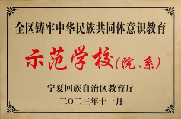 ▲北方民族大学获评宁夏回族自治区铸牢中华民族共同体意识教育示范学校。