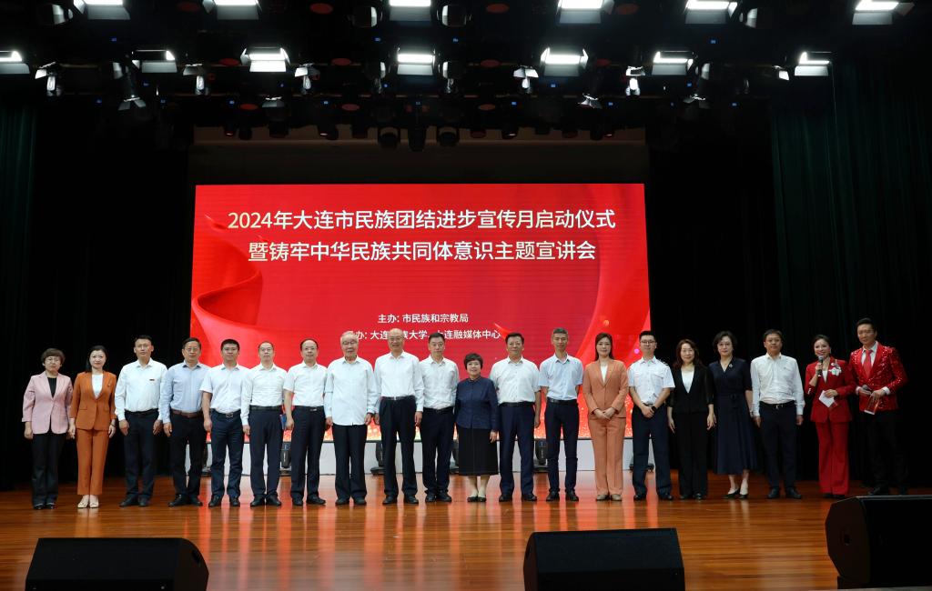 民大新闻网讯  9月18日,由大连市委统战部、市民族和宗教局联合举办,大连民族大学、大连融媒体中心承办的2024年全市民族团结进步宣传月启动仪式暨铸牢中华民族共同体意识主题宣讲会在我校举办。大连市副市长刘东立、大连市人大民侨外委主任张金双、大连市民族和宗教局局长阎明宇,学校党委书记赵铸、校长丁克毅出席活动。
