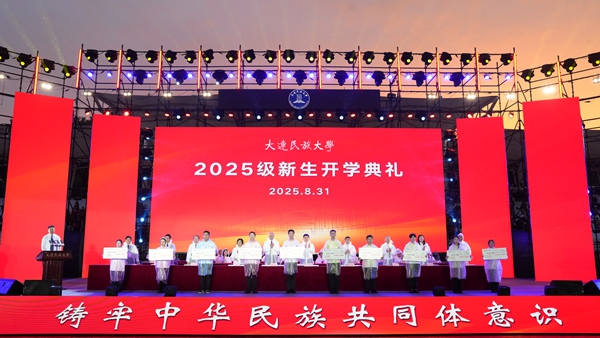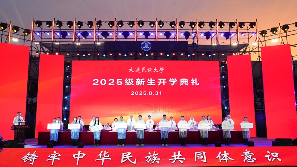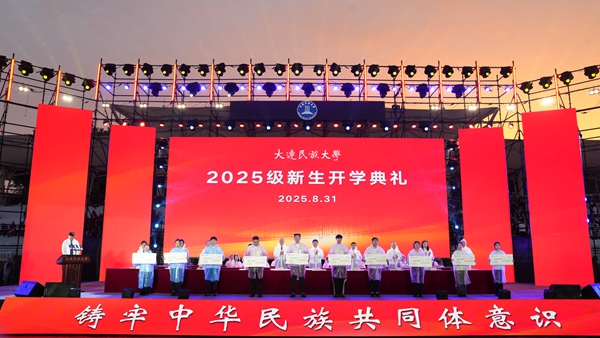 民大新闻网讯 8月31日,学校2025级新生开学典礼在金石滩校区体育场隆重举行,6217名新同学怀揣着青春的热忱迈入民大校园,在这里开启崭新的人生航程。