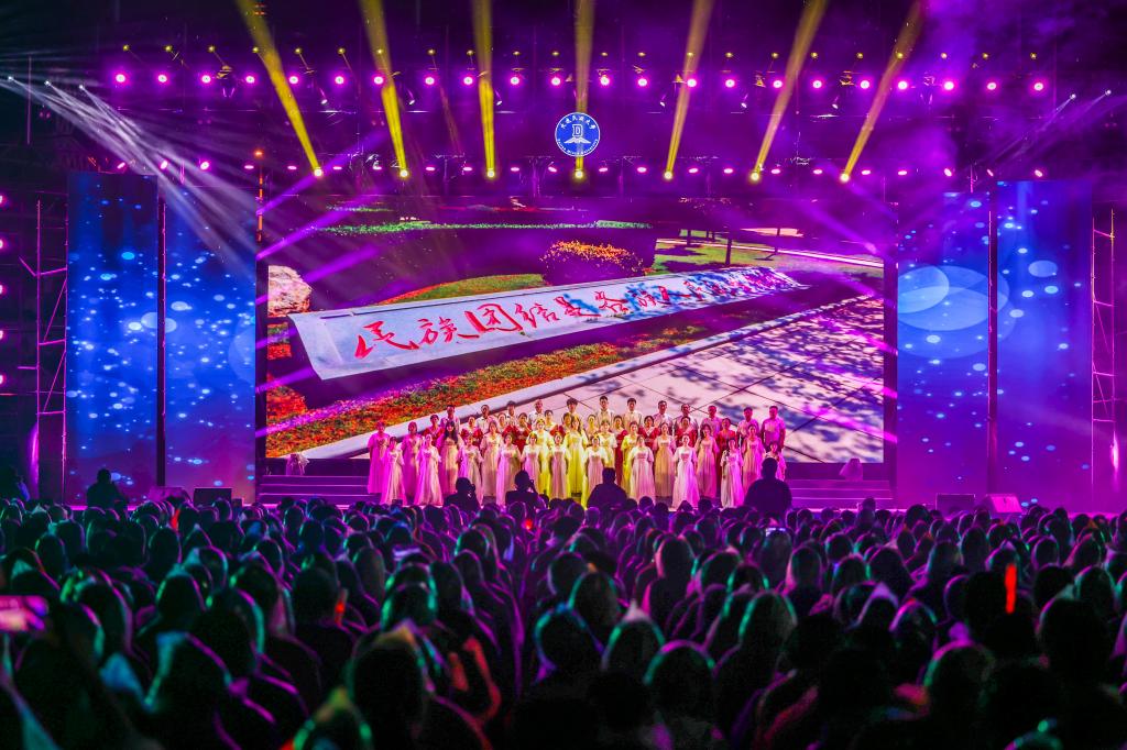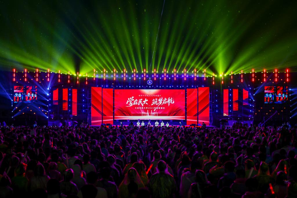 民大新闻网讯 8月31日晚,“铸牢中华民族共同体意识 学在民大 筑梦启航”大连民族大学2025年迎新晚会在金石滩校区体育场举行。党委书记赵铸,党委副书记、校长赵立涛,党委常委、副校长王丽萍,党委常委、副校长张树彪,党委常委、副校长冯林,党委常委、副校长董斌,党委常委、副校长哈正利,党委常委、副校长王慧,党委常委、总会计师余世等,党委常委包和平现场观看晚会。