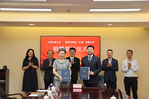 捐赠仪式上,校企双方分别签署《校企合作书》和《捐赠协议》。根据协议内容,微神马科技(大连)有限公司向大连民族大学教育发展基金会捐赠人民币100万元,设立“微神马专项基金”,用于支持校园文化建设、发放奖助学金、开展实习培训等多个方面。校企双方将围绕人才培养、科研合作、文化共建等更多领域开展更深层次的协作,共同为服务国家战略、推动地方经济社会发展贡献力量。