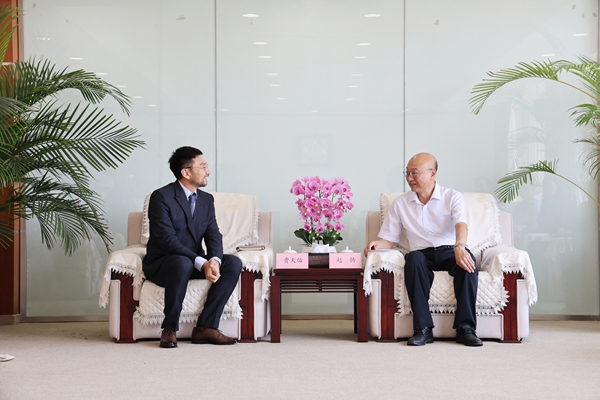 民大新闻网讯 9月9日下午,学校举行校友座谈会暨校友企业捐赠仪式。学校党委书记赵铸会见2002级生物工程系校友、微神马科技(大连)有限公司董事长曹天佑一行,党委副书记、校长赵立涛,党委常委、副校长王慧,学校教育发展基金会理事长刘锐参加座谈会和捐赠仪式。会议由党委常委、副校长冯林主持。