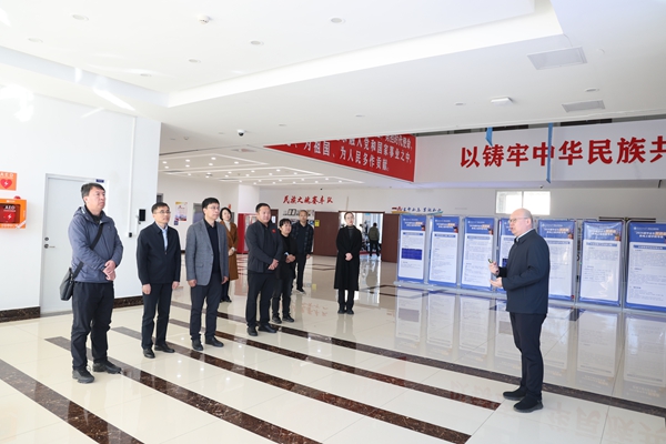 赵立涛对杨敬民一行的到来表示欢迎。他表示,学校党委高度重视两校合作,自战略合作协议签订以来,双方在建设铸牢中华民族共同体意识教育实践基地、共建高水平研究平台、推进硕士学位授予立项建设等领域深度交流分享,特别是在师资队伍共建、推动铸牢中华民族共同体意识融入思政课教学等关键工作上务实推进、卓有成效,在长期互动中结下了互信互助的深厚情谊。下一步,希望双方继续深化合作、资源共享、优势互补,产出更多成果,共创两校高质量发展新局面,为做好新时代党的民族工作贡献高校力量。
