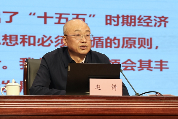 赵铸表示,党的二十届四中全会是在我国即将胜利完成“十四五”规划主要目标任务,进入基本实现社会主义现代化夯实基础、全面发力的关键时期召开的一次重要会议。全会审议通过的《中共中央关于制定国民经济和社会发展第十五个五年规划的建议》擘画了我国未来五年发展的宏伟蓝图,为深入推进中国式现代化指明了前进方向。学习好贯彻好党的二十届四中全会精神,是当前和今后一个时期的一项重大政治任务。全校上下要深刻领悟“两个确立”的决定性意义,增强“四个意识”、坚定“四个自信”、做到“两个维护”,切实把思想和行动统一到党中央决策部署上来。