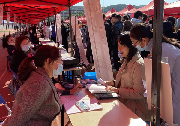 民大新闻网讯 10月20日至21日,我校与大连金普新区党工委组织部(人才办)、大连金普新区人力资源和社会保障局联合举办的2022届毕业生秋季双选会,在开发区校区体育场和金石滩校区篮球场举行。学校相关职能部门负责人、各学院主管学生工作书记(副书记)和毕业生辅导员对毕业生求职进行现场指导。