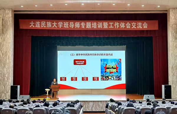 会上,中华民族共同体研究院院长张利国作了《全面学习贯彻中央民族工作会议精神 铸牢中华民族共同体意识》专题辅导报告,回顾了历次中央民族工作会议,对中央民族工作会议的“十二个必须”、“四个必然要求”、“四个与共”、“四对关系”、“五个方面”进行了详细阐述,进一步强调铸牢中华民族共同体意识教育是新时代民族教育的工作主线。经济管理学院班导师任红、生命科学学院班导师金黎明、国际商学院班导师张欣,分别围绕班导师“五抓”工作职责,特别是抓日常教育管理和抓班级组织建设作了工作体会交流。