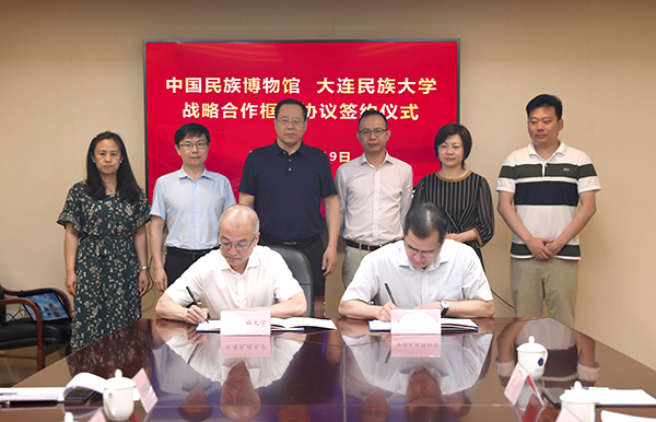 民大新闻网讯 7月18日,我校与中国民族博物馆签署校馆战略合作协议。中国民族博物馆党委副书记、纪委书记张继康,学校党委副书记、副校长陈明华分别代表双方在协议书上签字。学校及中国民族博物馆相关部门负责人参加签字仪式。