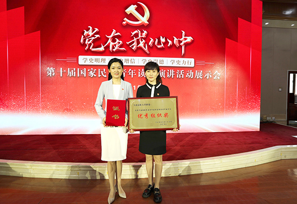 民大新闻网讯 5月28日,“党在我心中”第十届国家民委青年读书演讲比赛在京举办,我校信息与通信工程学院辅导员童童参加比赛并以总分第一的成绩获优胜奖,学校获优秀组织奖。