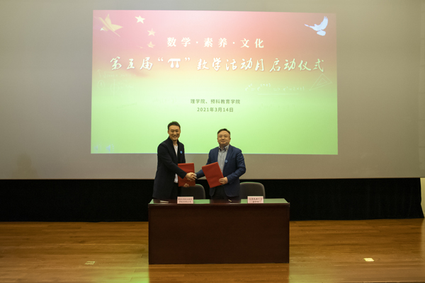 民大新闻网讯 在国际数学节到来之际,3月14日,理学院、预科教育学院举行“数学•素养•文化”第五届“π”数学活动月启动仪式。学校副校长黄永东,大连理工大学、辽宁师范大学等兄弟院校的领导和专家,新东方浙江培训学校有限公司负责人,学校相关职能部门负责人,理学院、预科教育学院领导班子,全体教师、学生代表参加启动仪式。启动仪式由学院党总支书记国策主持。
