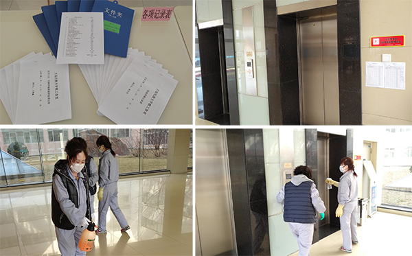 加强物业保洁防控。对于学校办公楼宇走廊、楼梯间、卫生间等公共区域,每天进行2次消毒。对于楼宇中的死角部分用小喷壶喷洒、用抹布擦拭,争取做到无遗漏、无盲点。针对空间更为密闭的电梯间,更是每隔2小时消毒一次。在做好消毒工作的同时做好公共区域的卫生清扫、公共场所开窗通风等工作,确保校园环境干净卫生整洁。为加强疫情防控期间垃圾分类管理,学校设立了废弃口罩专用垃圾桶,并已于近日将开发区校区原有垃圾房进行拆除,启用新垃圾房。
