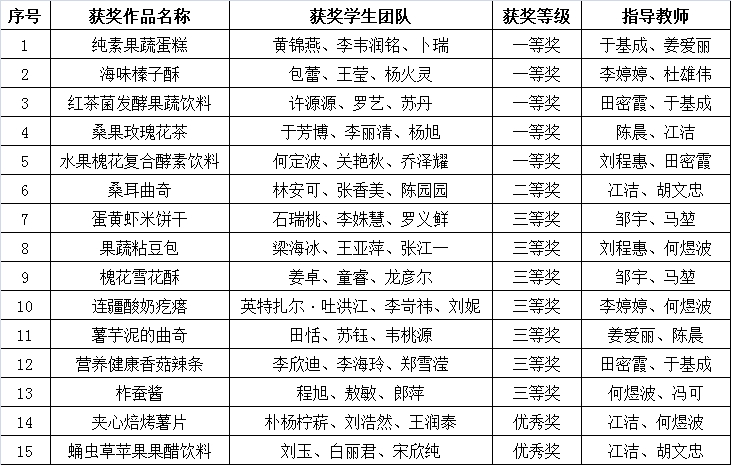 民大新闻网讯 日前,由辽宁省教育厅主办的第二届辽宁省普通高等学校本科大学生食品创新大赛在北票市举行,我校生命科学学院食品工程系学生创新项目荣获一等奖5项、二等奖1项、三等奖7项、优秀奖2项,于基成、陈晨两位老师获得“优秀指导教师”称号,学校获“优秀组织单位”荣誉称号。
