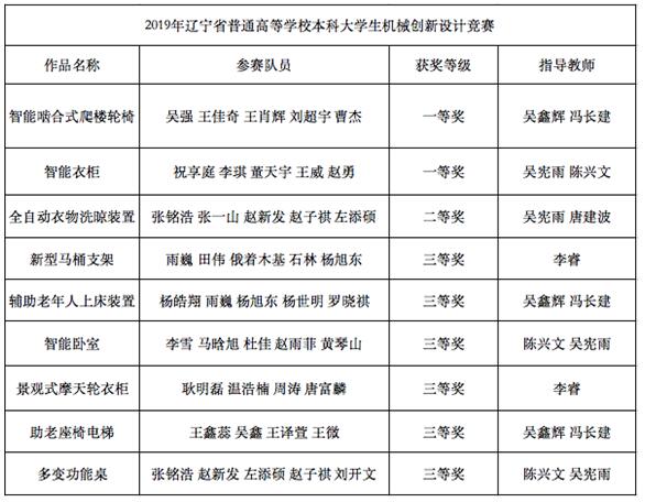 民大新闻网讯 日前,2019年辽宁省普通高等学校本科大学生机械创新设计竞赛在辽宁工程技术大学落下帷幕,我校获得省级一等奖2项,二等奖1项,三等奖6项,学校被评为优秀组织单位。