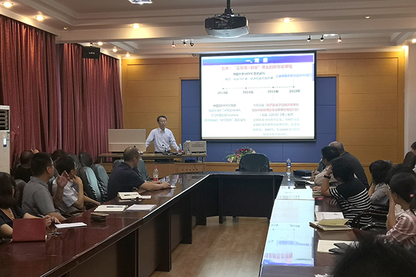 孟长功从在线化学类开放课程的建设背景入手,阐述了其多年来在系列化学开放课程建设、数字课程和新形态教材建设、线上线下混合式教学模式改革、系列化学虚拟仿真实验室建设与应用等四个方面的探索和尝试。他表示,通过服务于学校“以学习者为中心”的线上线下混合式课堂教学模式改革,服务于学生的课外辅助学习和拓展学习,服务于社会学习者自学三个角度,其所在课题组实现了“建以致用、资源共享”的网络开放课程定位。在互动环节,孟长功就重复课程在多个课程中如何体现、在线课程的有效推广与利用、本科教育中教师育人的启迪作用等多个问题作了详细的解答。与会教师还与孟长功交流了我校全员育人的理念以及班导师深度参与学生教育管理的实例。