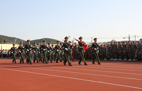 民大新闻网讯 9月2日,学校在两校区同时举行“同升国旗 共唱国歌”师生开学第一课活动。党委副书记、副校长陈明华,相关部门负责人,各学院党总支书记、副书记,团委书记,辅导员和2019级全体学生参加活动。