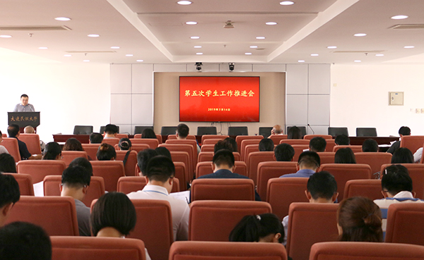 民大新闻网讯 7月14日下午,学校召开2019年度第五次学生工作推进会,副校长陈明华,相关职能部门负责人,各学院主管学生工作的党总支书记、副书记,全体学生工作者参加会议。会议由学生工作部部长、学生处处长徐绍文主持。