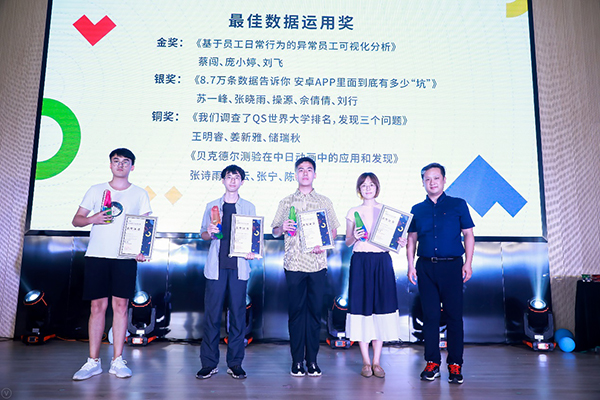 民大新闻网讯 6月16日,首届中国数据可视化创作大赛颁奖典礼于南京大学举行。由我校信息与通信工程学院许小可教授团队指导,计算机技术领域硕士研究生蔡闯、庞小婷、刘飞等同学的作品《基于员工日常行为的异常员工可视化分析》荣获最佳数据运用组金奖。