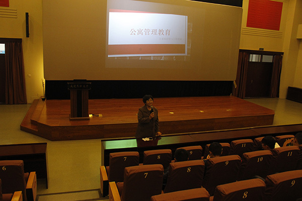公寓是学生大学期间极为重要的生活场所。为帮助学生适应公寓管理,营造良好的生活氛围,10月22日,学院邀请金石滩校区公寓管理中心负责人郭秋梅面向新生开展“公寓管理教育”讲座,郭秋梅从卫生、公共秩序、安全和维修四个方面详细解读了公寓管理的相关规定,希望同学们服从宿舍内务管理,提高安全意识,营造和谐的寝室氛围,在民族大学留下一段美好的寝室生活回忆。