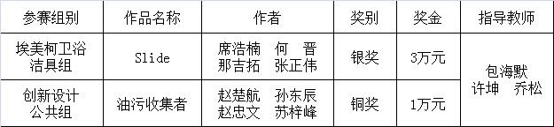 镇海杯国际创新设计大赛由中国机械工程学会和宁波市人民政府主办,是国内知名的重要设计赛事之一。本届大赛分为创新设计公共组和埃美柯卫浴洁具组两个组别,历时六个月,共吸引来自海内外的包括高校、企业、设计机构与个人的逾330家单位参与。经过初评和终评,我校参赛作品《Slide》和《油污收集者》符合大赛“以人为本、技艺融合、商业持续、环境友好”的特征,体现了创新设计的特点,从2257份参赛作品中脱颖而出,喜获两项大奖。