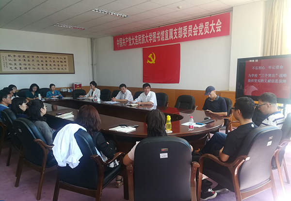 民大新闻网讯 根据学校党委的统一部署,按照学校关于基层党组织换届选举工作要求,9月7日,图书馆直属党支部在开发区校区图书馆会议室召开全体党员大会。学校副校长杜元虎、图书馆直属党支部全体党员参加会议。会议由图书馆馆长杜智殊主持。