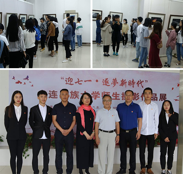 民大新闻网讯 7月1日上午,在庆祝中国共产党成立97周年之际,学校在金石滩校区图书馆举办“迎七一•逐梦新时代”师生摄影作品展。学校相关部门负责人、部分教师与学生代表参加了展览。