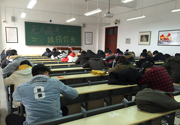 民大新闻网讯 1月16日,学校期末考试周第二天,金石滩校区首次进行免监考考试。金石滩校区的8个考场共251名学生参加,考场秩序井然,实现零违纪。