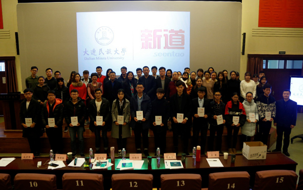 大连民族大学-新道创新创业学院首届创新创业实践班于2016年9月开班,2017年9月结业。实践班学员来自金石滩校区所有学院,培养方案设置了三个层次共12学分的课程体系,教学突出实用、实践与实战,成为我校创新创业教育的体系化平台。结业仪式上,新道科技股份有限公司及我校相关负责人为学生代表颁发了结业证书。现场随后进行了项目路演。新道科技专职创业导师从11月15日起,专门针对我校大学生双创团队举办了特训营,对我校25个创业团队开展了评估、指导和培训,确定了10个项目参加最终评审。各项目负责人结合路演PPT,对项目基本情况、营销策略等进行了介绍。评审专家组分别从目标用户定位、市场可行性、商业模式、团队建设等方面进行了精彩点评和细致指导。